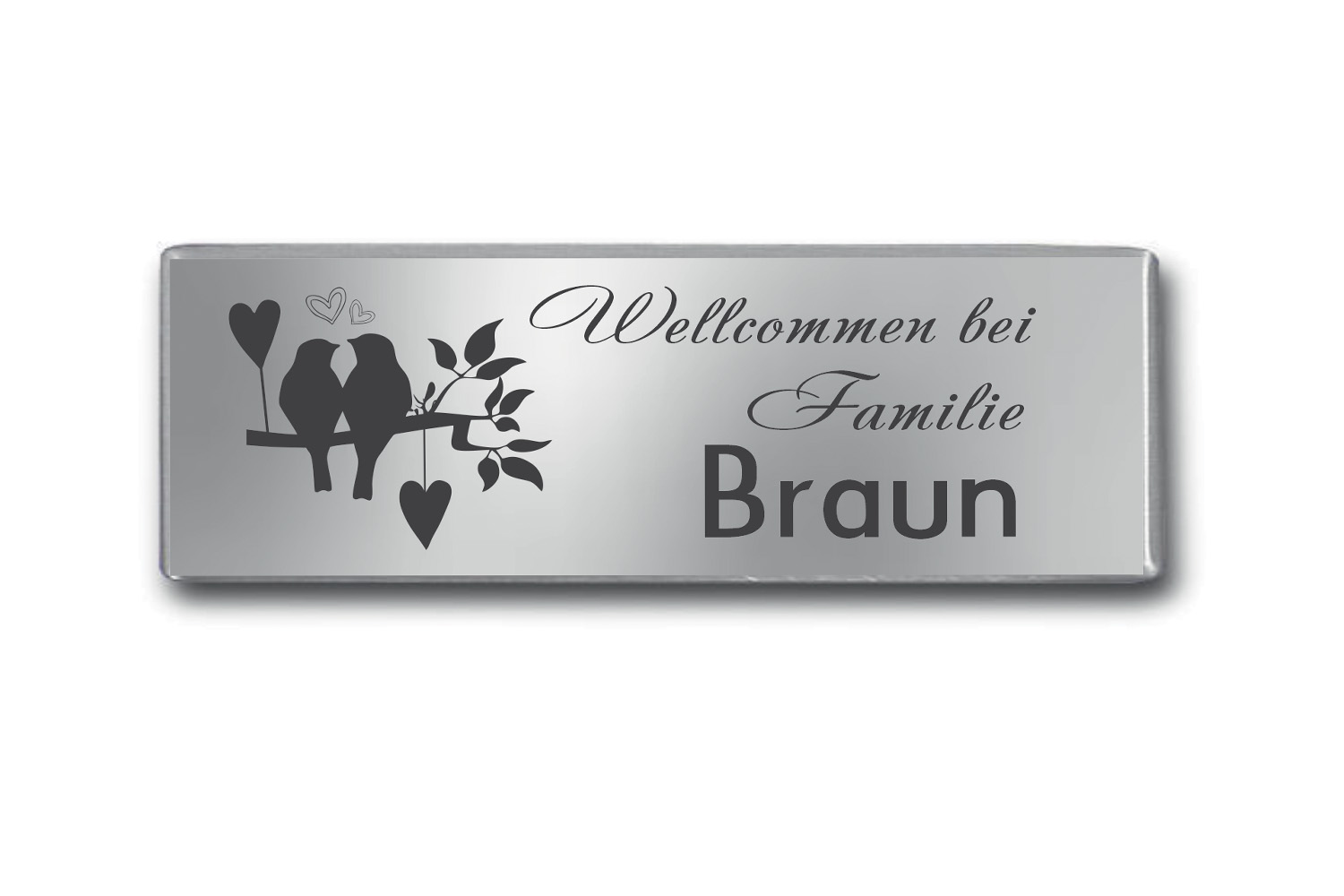 Alle Gravuren werden individuell angepasst (Schriftgröße, Abstand, Ausrichtung). Wenn Sie mehrere Schilder gleichzeitig bestellen, richten wir die Gestaltung am längsten Text aus – für ein einheitliches Erscheinungsbild.