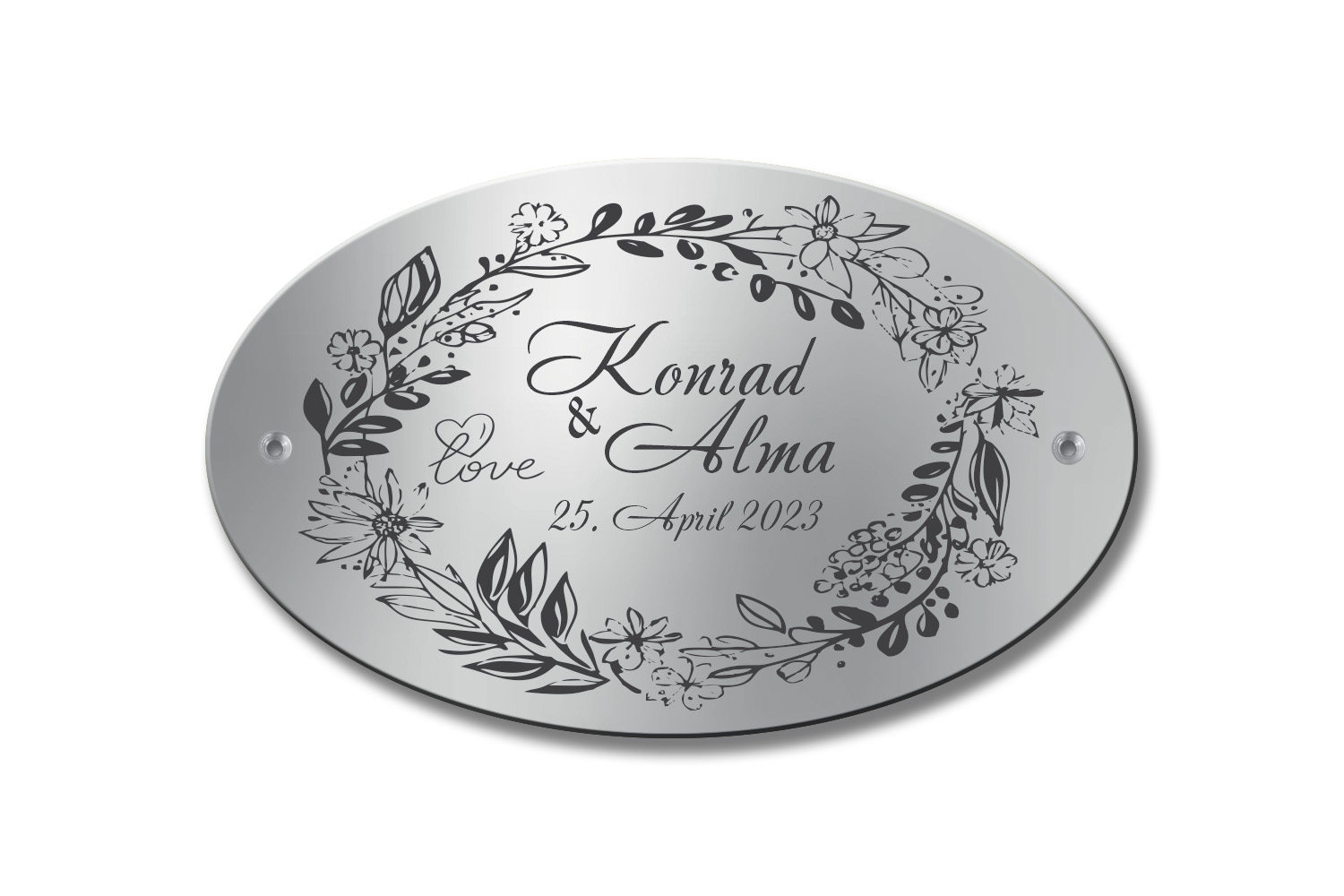 Dank unserer Präzisions-Lasergravur bleibt Ihr Hochzeitsdatum und Ihr Name gestochen scharf und wetterbeständig.