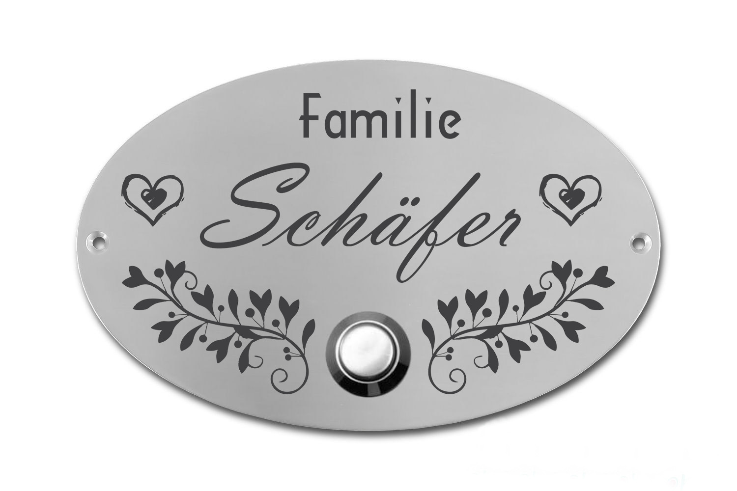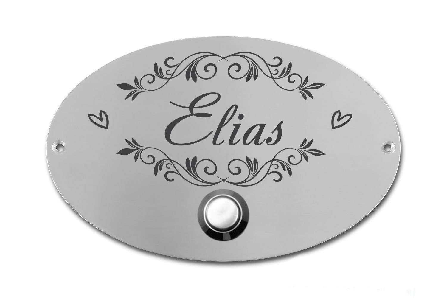 • Edelstahlschild mit Klingelknopf 100 x 70 mm mit individuell Gravur, TEGravur, Oval