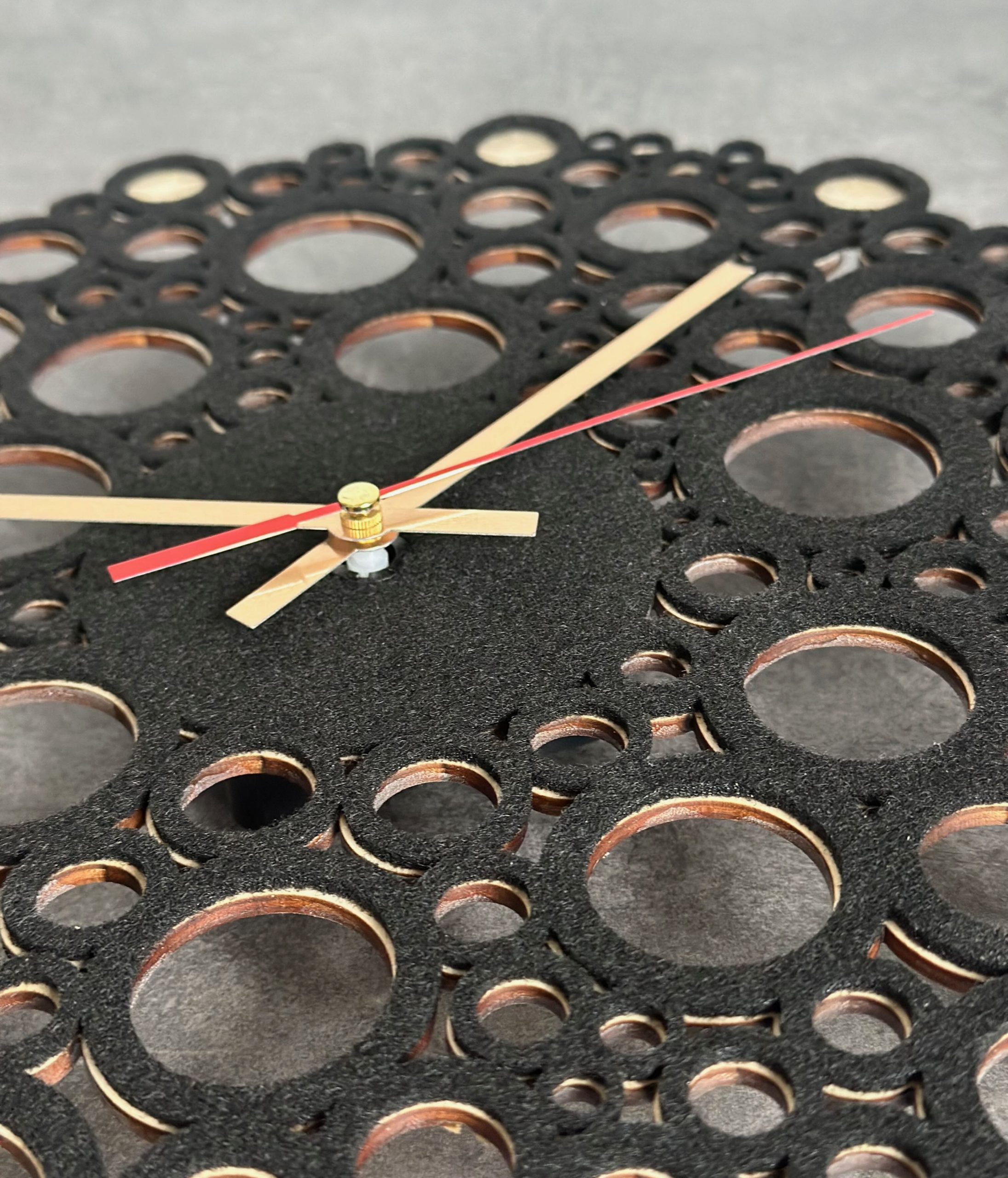 Runde Holzuhr mit Kreativem Muster, Schwarzem Filz , Wanddekoration,