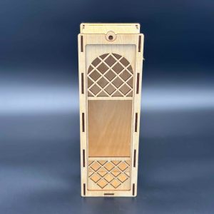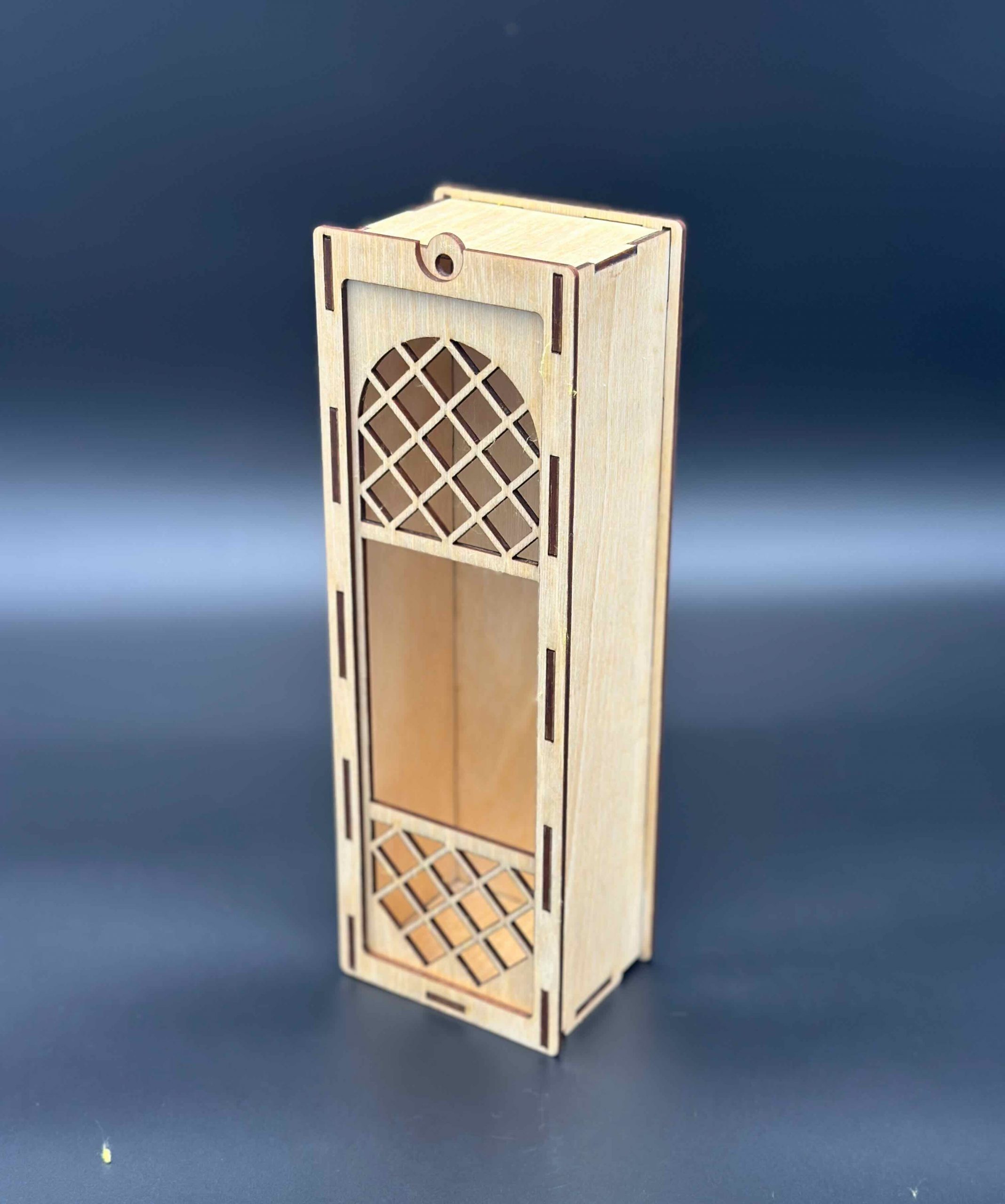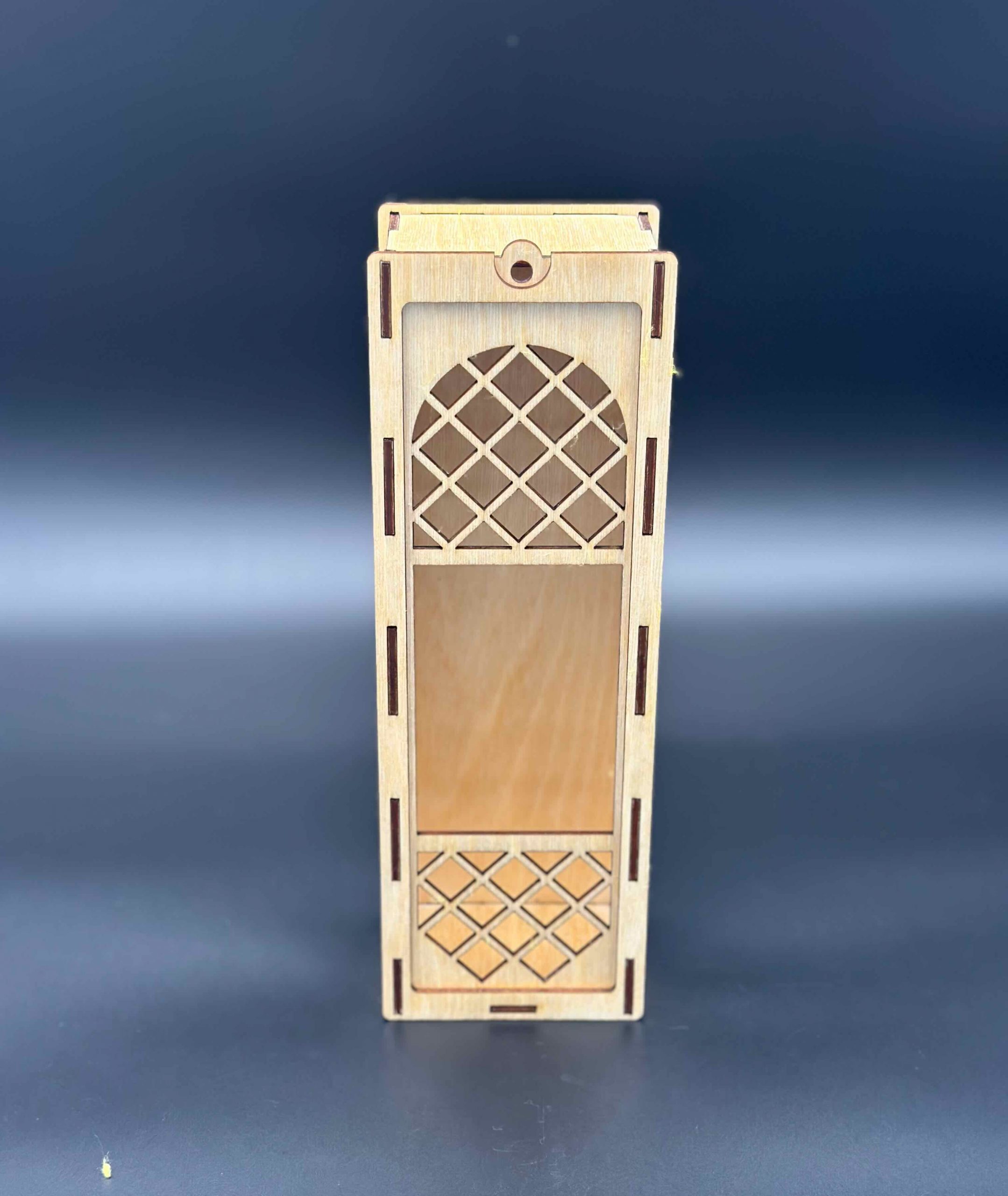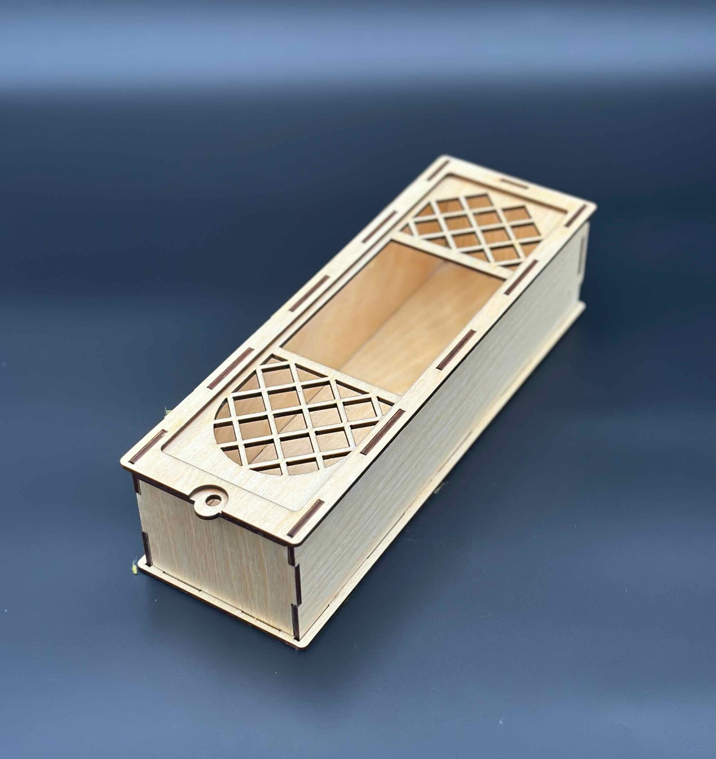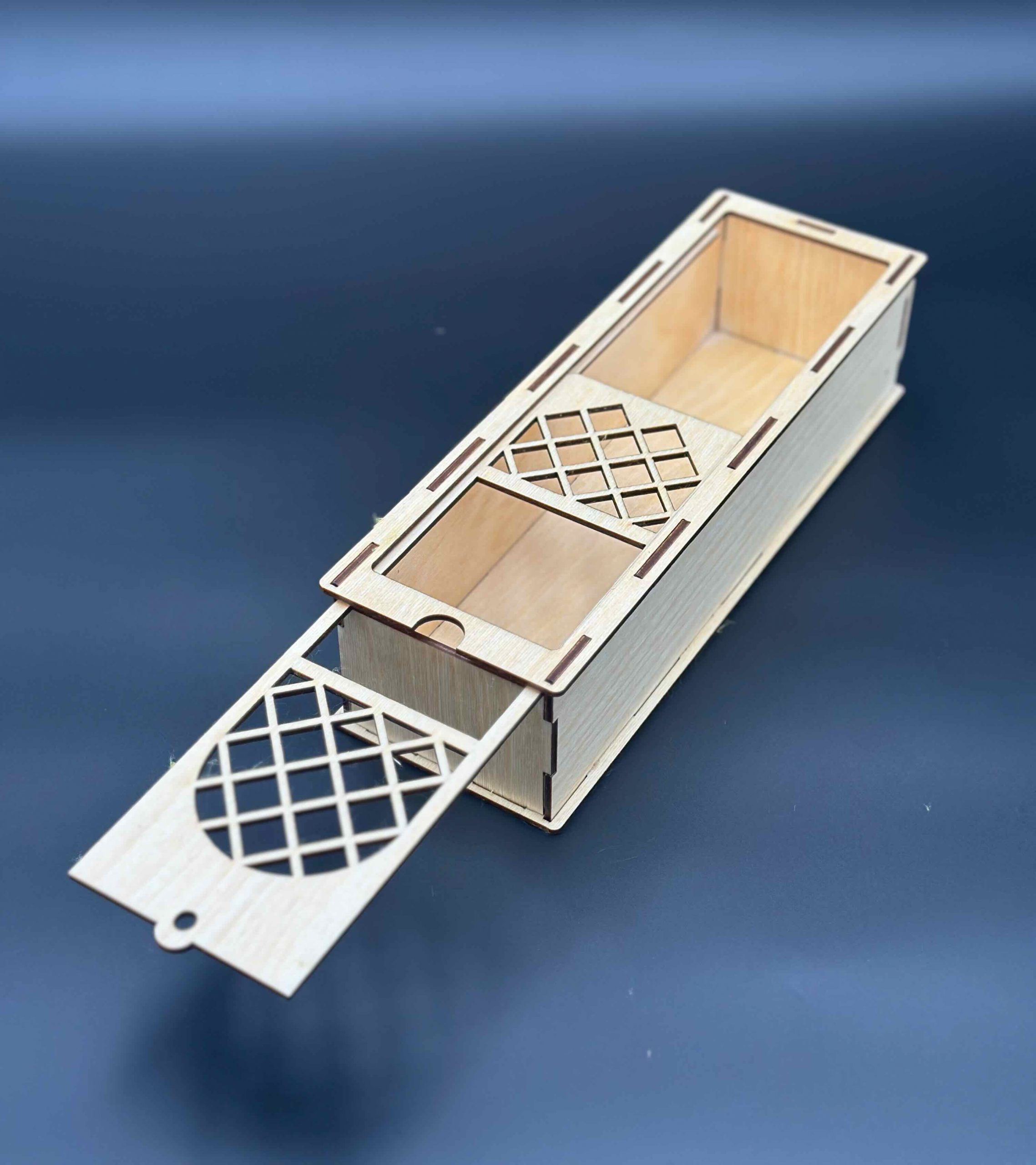 Blick auf den Inhalt: Die Ausschnitte dienen nicht nur der Dekoration, sondern erlauben auch einen dezenten Blick auf die Flasche im Inneren. Dies steigert die Vorfreude und macht die Geschenkverpackung Wein Holz zu einem interaktiven Erlebnis.