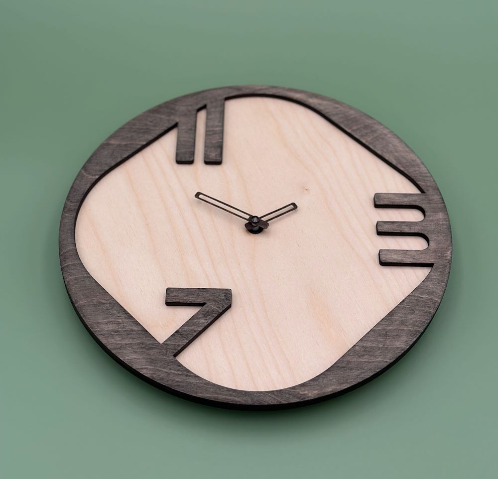Jede Uhr ist eigenartig, jede Furnierplatte zeichnet sich durch eine besondere Holzmaserung und einen besonderen Farbton aus.