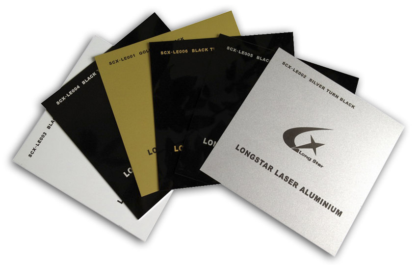 Aluminium: Ein leichtes, aber robustes Material, das sich ideal für moderne, farbenfrohe und preisgünstige Lösungen eignet. Die Gravur auf eloxiertem Aluminium erzeugt einen klaren Kontrast und ein langlebiges Bild.